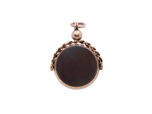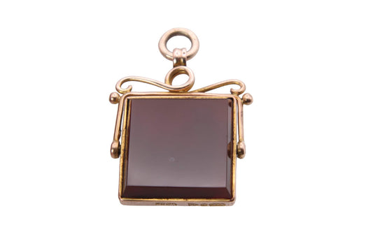 Antique 9ct Gold Bloodstone Carnelian Spinner Pendant