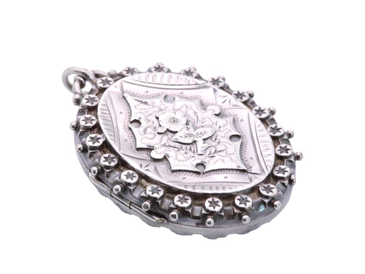 Antique Sterling Silver Floral Rose & Star Decorative Locket, 1887