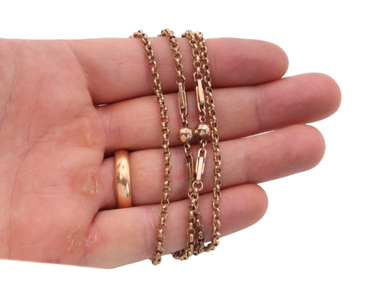 Antique 18ct Gold Filled Fetter Ball Link Long Guard, 53"