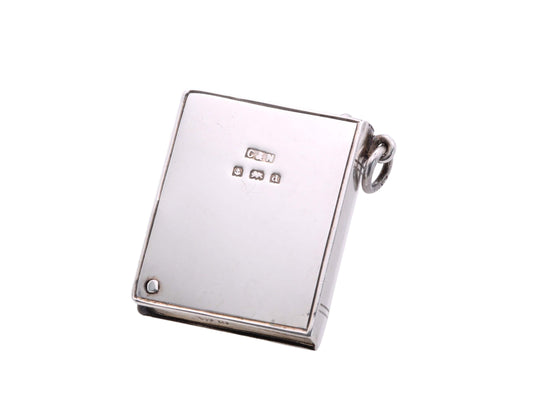 Antique Sterling Silver Book Shaped Pendant Stamp Case, 1903