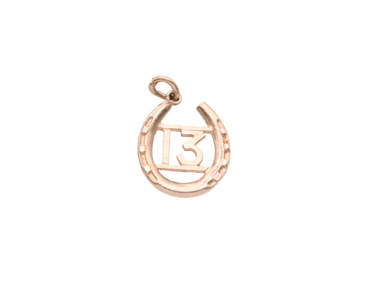 Vintage 9ct Gold Lucky Number 13 Horseshoe Charm Pendant
