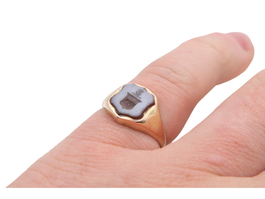 Antique 18ct Gold Intaglio Signet Ring Coat Of Arms Crest