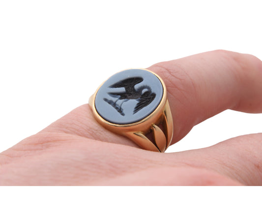 Antique 18ct Gold Intaglio Signet Ring Demi Eagle Crest, 15g