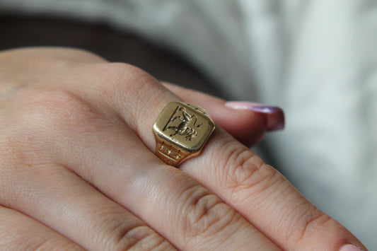 Antique 18ct Gold Intaglio Signet Ring Griffin Crest - 1932