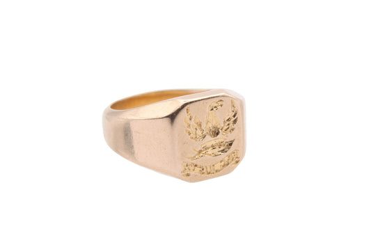 Antique 18ct Gold Intaglio Signet Ring Phoenix Crest