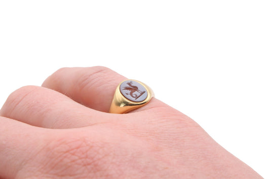 Antique 18ct Gold Intaglio Signet Ring Dragon Crest - 1928