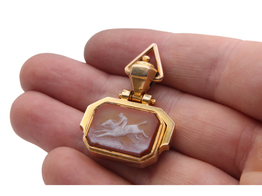 Antique 18ct Gold Horse Scene Carnelian Spinner Pendant
