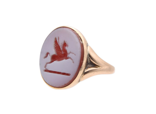 Antique 18ct Gold Intaglio Signet Ring Pegasus Crest