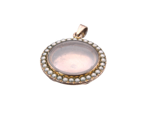 Antique 9ct Gold & Pearl Glass Photo Locket Pendant