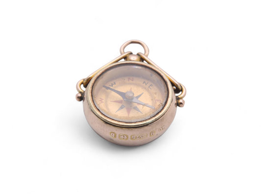 Antique 9ct Gold Carnelian Compass Spinner Pendant, 1913