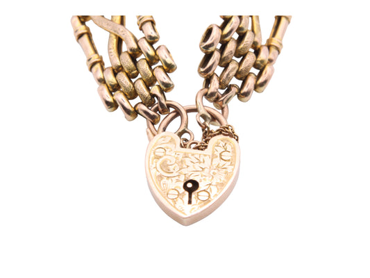 Antique Edwardian 9ct Yellow Gold Chased Gate Bracelet, 15g