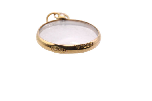 Antique Edwardian 9ct Yellow Gold Open Face Glass Locket Pendant - 1901