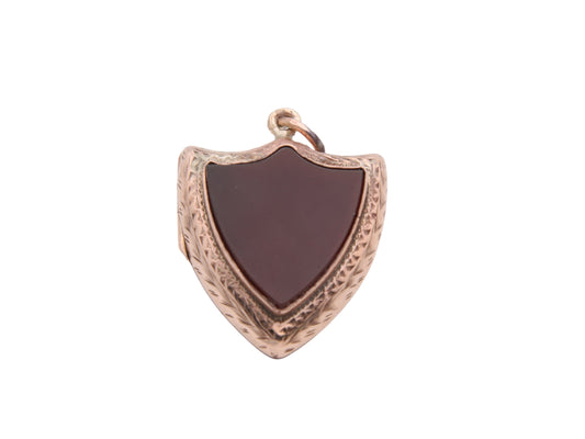 Antique Victorian 9ct Gold & Carnelian Shield Shaped Locket