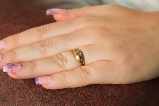 Antique Victorian 18ct Gold, Diamond & Sapphire Gypsy Ring - 1899