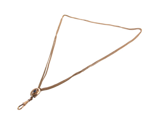 Antique Victorian 9ct Rolled Gold Long Guard With Blue Paste Slider