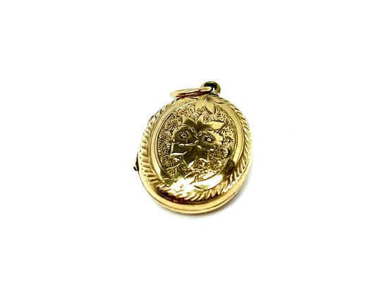Antique Victorian 9ct Gold Locket, Forget-Me-Not & Ivy Chasing, Sentimental Keepsake Pendant c.1890