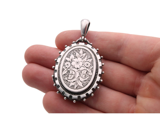 Antique Victorian Forget Me Not Silver Locket, 1881
