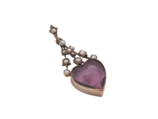 Antique Victorian Pinchbeck Amethyst Glass Heart Pendant