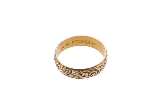 Antique Victorian Floral Chased 18ct Gold Ring, 1897