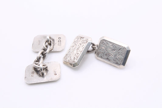 Antique Victorian Silver Engraved Cufflinks - 1893