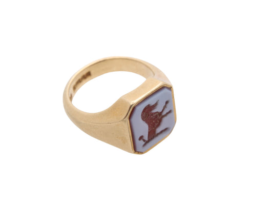 Vintage 18ct Yellow Gold Intaglio Signet Ring Horse Head Crest