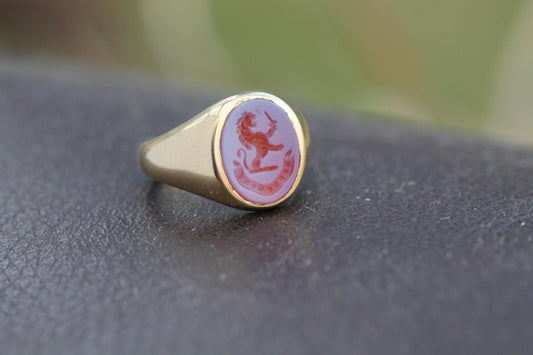 Vintage 18ct Gold Sardonyx Intaglio Lion 'Persevere' Signet Ring, 1997