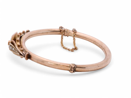 Antique 9ct Gold Diamond & Ruby Decorative Bangle - 1901