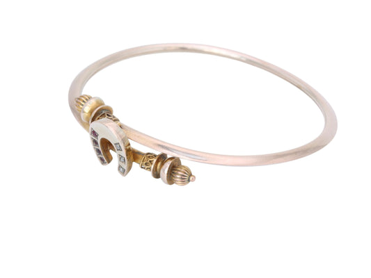 Antique 9ct Gold Diamond Ruby Lucky Horseshoe Bangle Bracelet, 6.5"