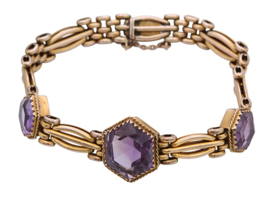Antique 9ct Gold Amethyst Bracelet, 7"