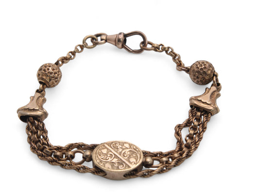 Antique 9ct Rolled Rose Gold Albertina Bracelet, 19cm