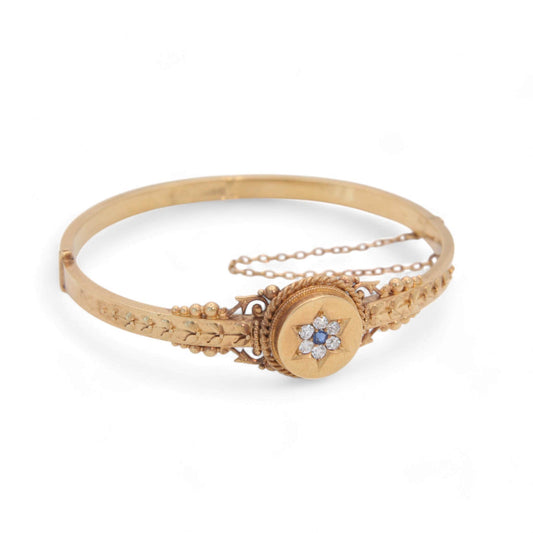 Antique 9ct Gold Diamond & Sapphire Bangle