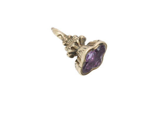 Antique 9ct Gold Amethyst Intaglio Bird With Letter Pendant Seal
