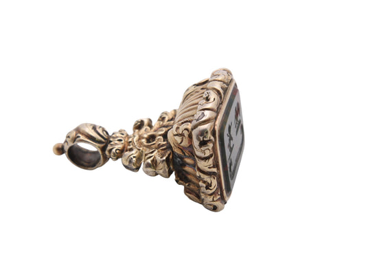 Antique 9ct Gold Intaglio Falcon Crest "Steadiness is the foundation of the virtues" Seal Pendant