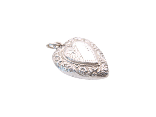Art Deco Sterling Silver Puffy Heart Pendant