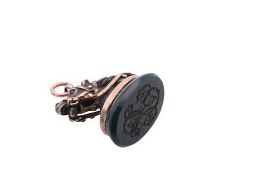 Antique 9ct Gold Large Bloodstone Carnelian Spinner Pendant, 1920