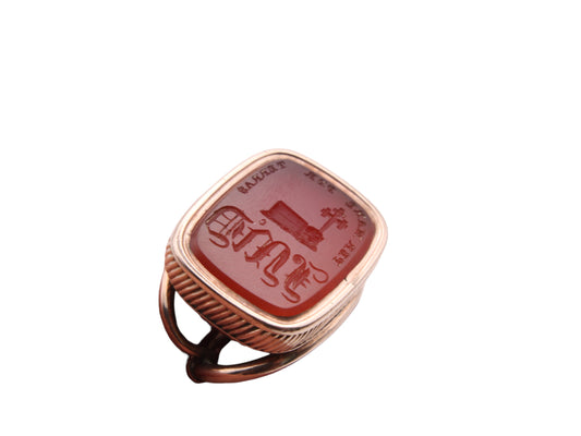 Antique Victorian 9ct Gold Intaglio Crest Snake Seal Pendant