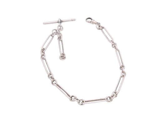 Antique Sterling Silver Trombone Link Albert Chain, 14"