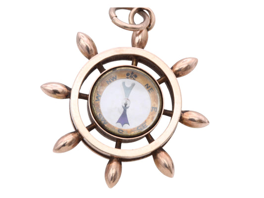Antique Sterling Silver Shield Shaped Compass Pendant