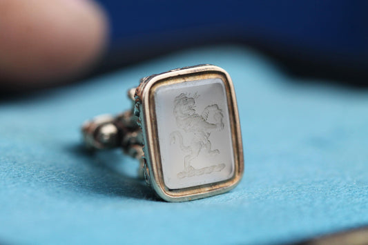 Antique Georgian 15ct Gold Chalcedony Lion Intaglio Seal Pendant