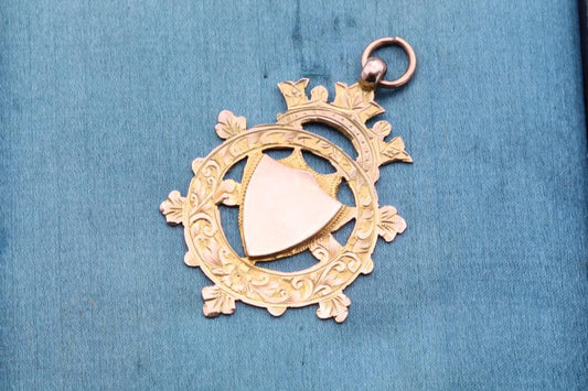 Antique 9ct Gold Chased Shield Motif Pendant, 1911