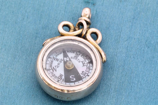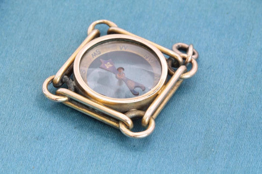 Antique 9ct Gold Trombone Link Compass Pendant, c.1890