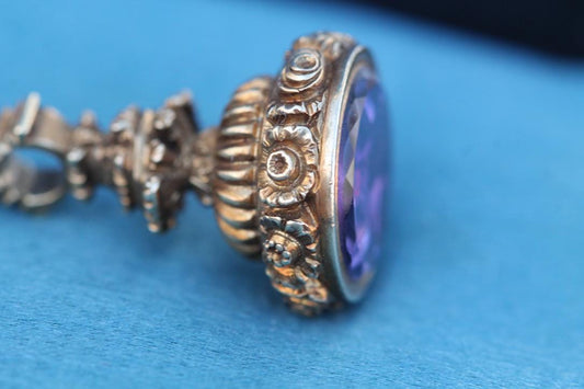 Antique Georgian 15ct Gold Floral Chased Amethyst Pendant