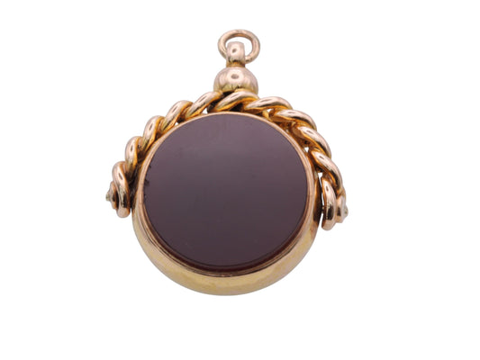 Antique 9ct Gold Bloodstone & Carnelian Spinner Pendant
