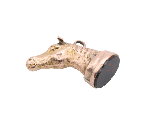 Antique 9ct Gold Horse Head Bloodstone Pendant Fob