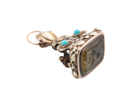 Antique Georgian Regency Period 15ct Gold Forget Me Not Intaglio Pendant