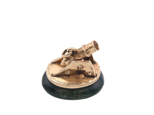 Antique Victorian 9ct Gold Bloodstone Cannon Fob Pendant