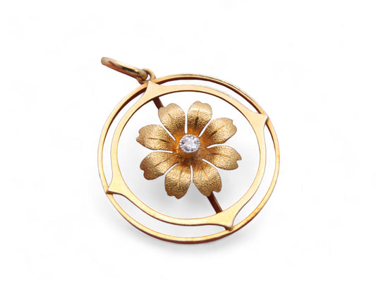 Antique 15ct Gold Diamond Flower Pendant