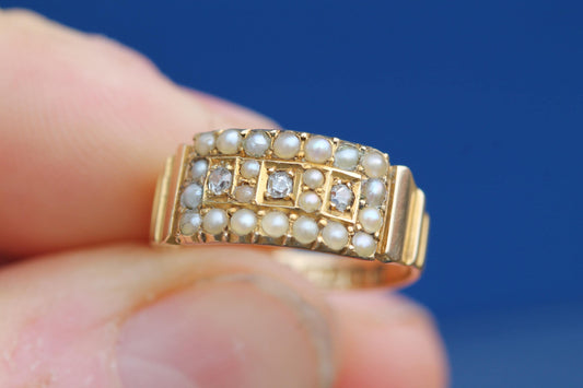 Antique 15ct Gold Diamond & Seed Pearl Ring, 1885
