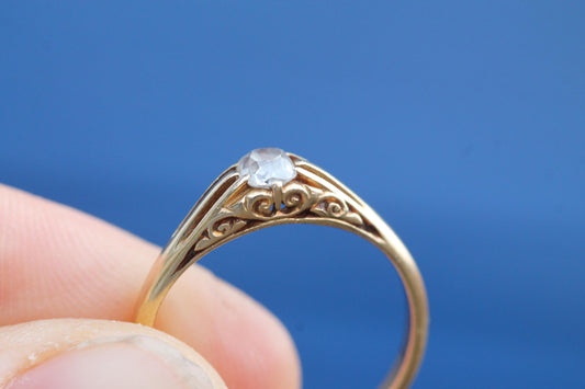 Antique 18ct Yellow Gold Cushion Cut Diamond Chased Ring, 1918