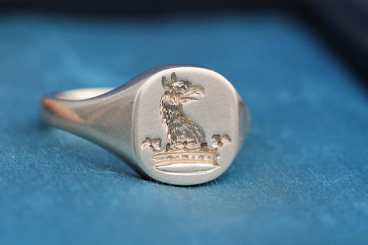 Vintage 9ct Gold Intaglio Lion "Fearless in his pride" Welsh Signet Ring, 1963